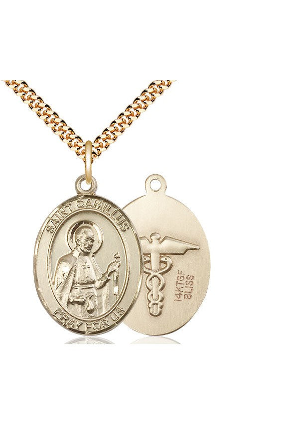 Unit price perSt. Camillus of Lellis Medal. Heavy 24" Curb Chain. Medal Dimensions: 1 x 3/4". Gift boxed in a velvet box.