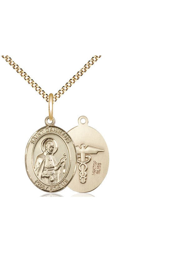 Unit price perSt. Camillus of Lellis/Nurse Pen. Lite 18" Curb Chain. Medal Dimensions: 3/4" x 1/2". Gift boxed in a velvet box.