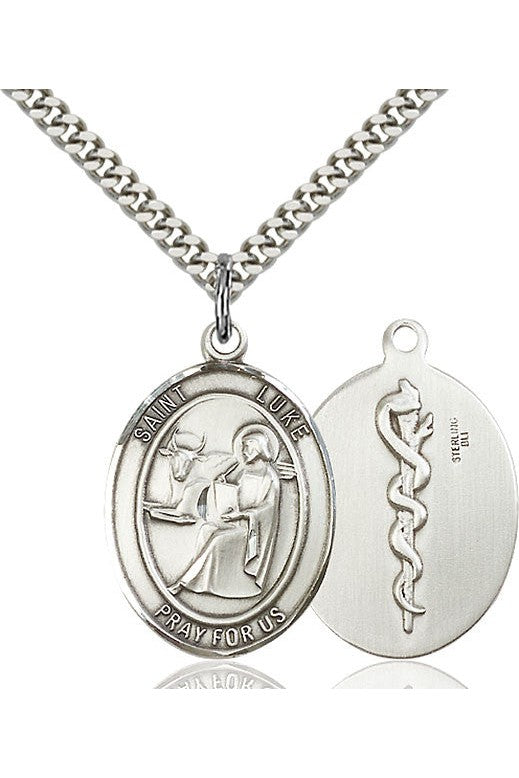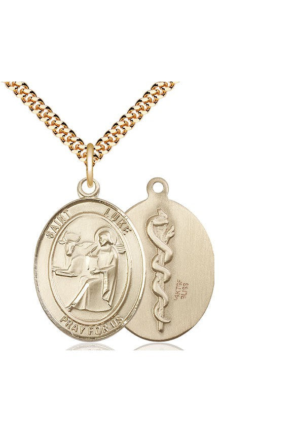 Unit price perSt. Luke the Apostle Medal. Heavy 24" Curb Chain. Medal Dimensions: 1 x 3/4". Gift boxed in a velvet box.