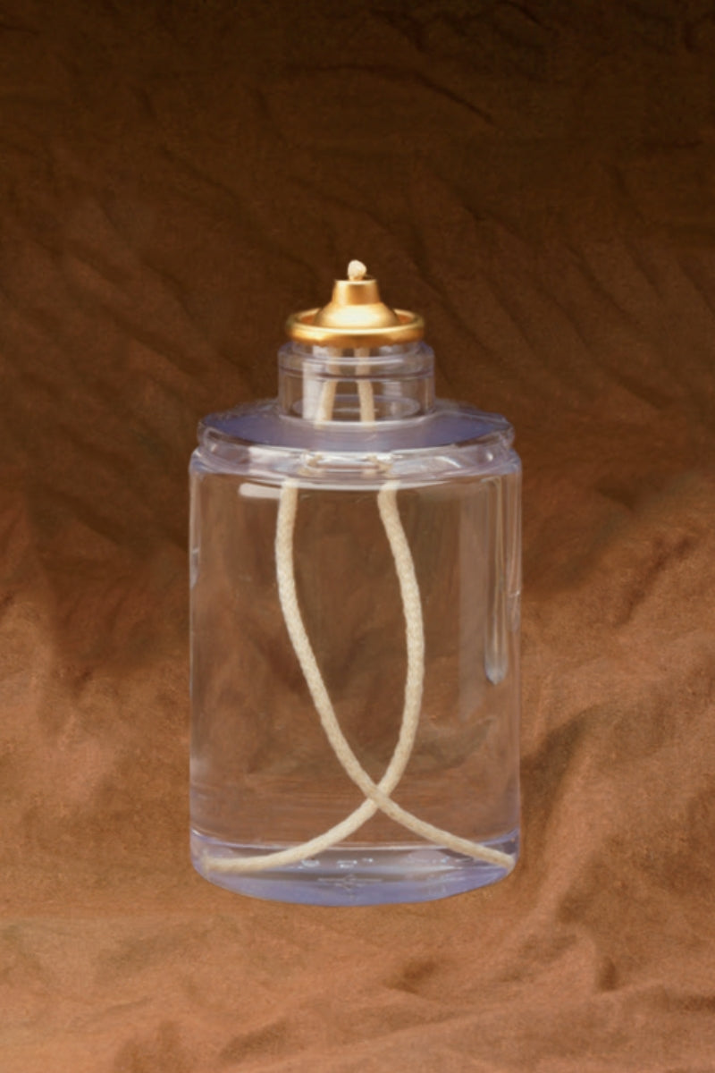 Oil burning Sanctuary Candle. 170 hour white PVC container. Use to replace your wax sanctuary candles. Clean burning for 7 days. 6-1/4" tall x 3-1/8" diameter, designed to be used in sanctuary globe.