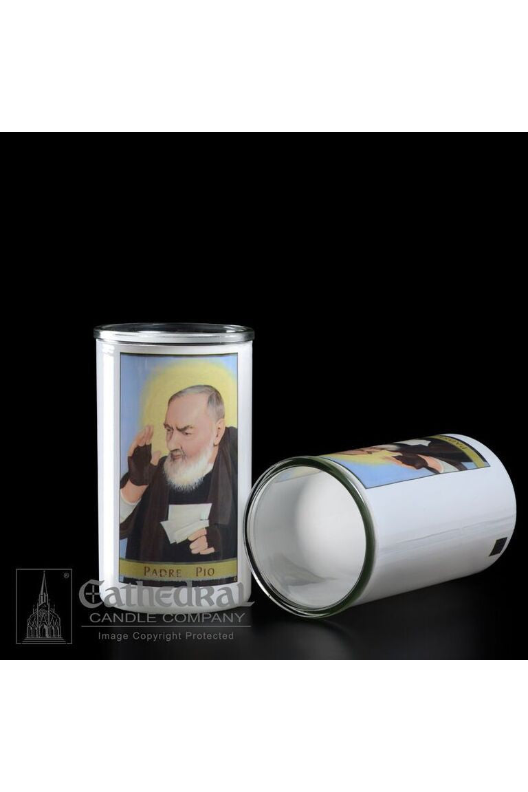 Unit price per3 day glass candle globes featuring Padre Pio. Available by the case of 12