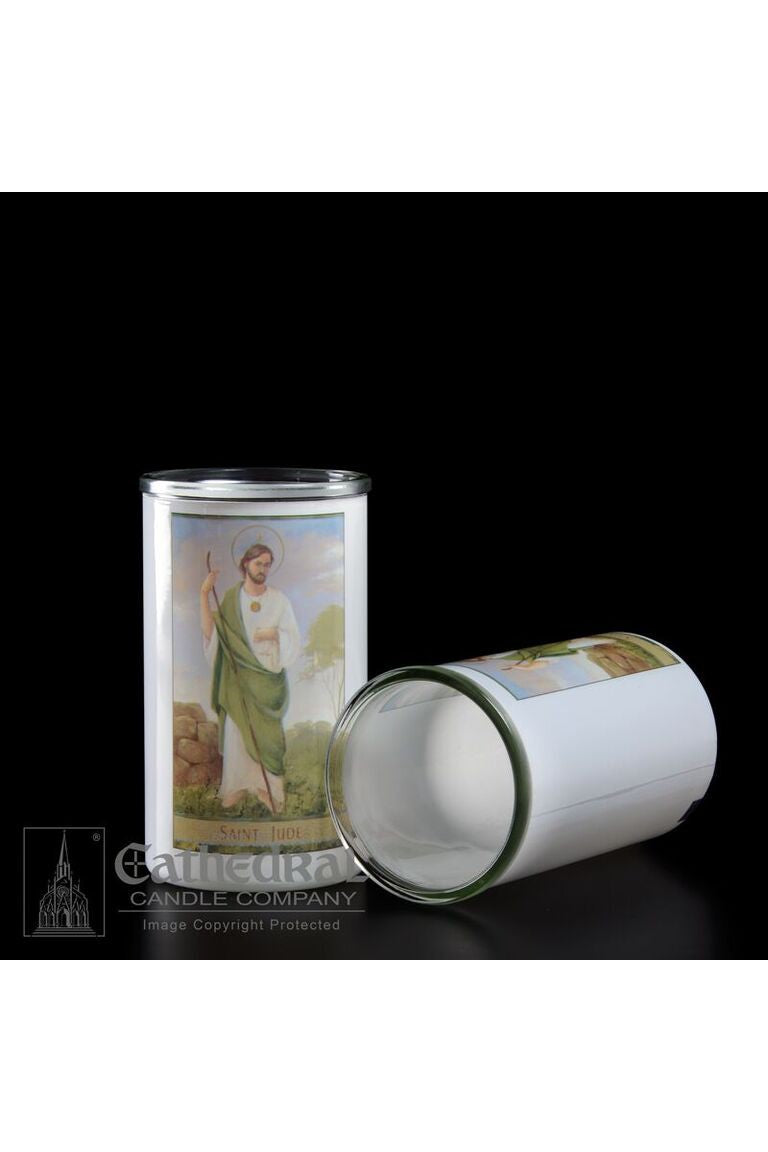 Unit price per3 day glass candle globes featuring Saint Jude. Available by the case of 12
