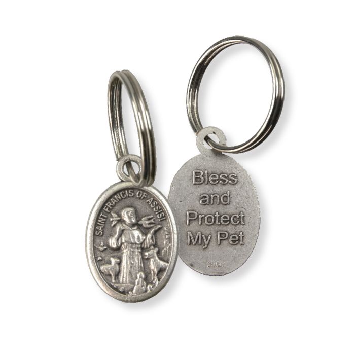 Unit price perThis is a great gift for pet lovers! This pet medal is a heart with Saint Francis of Assisi with a dog and cat. The medal reads Saint Francis of Assisi Protect My Pet.