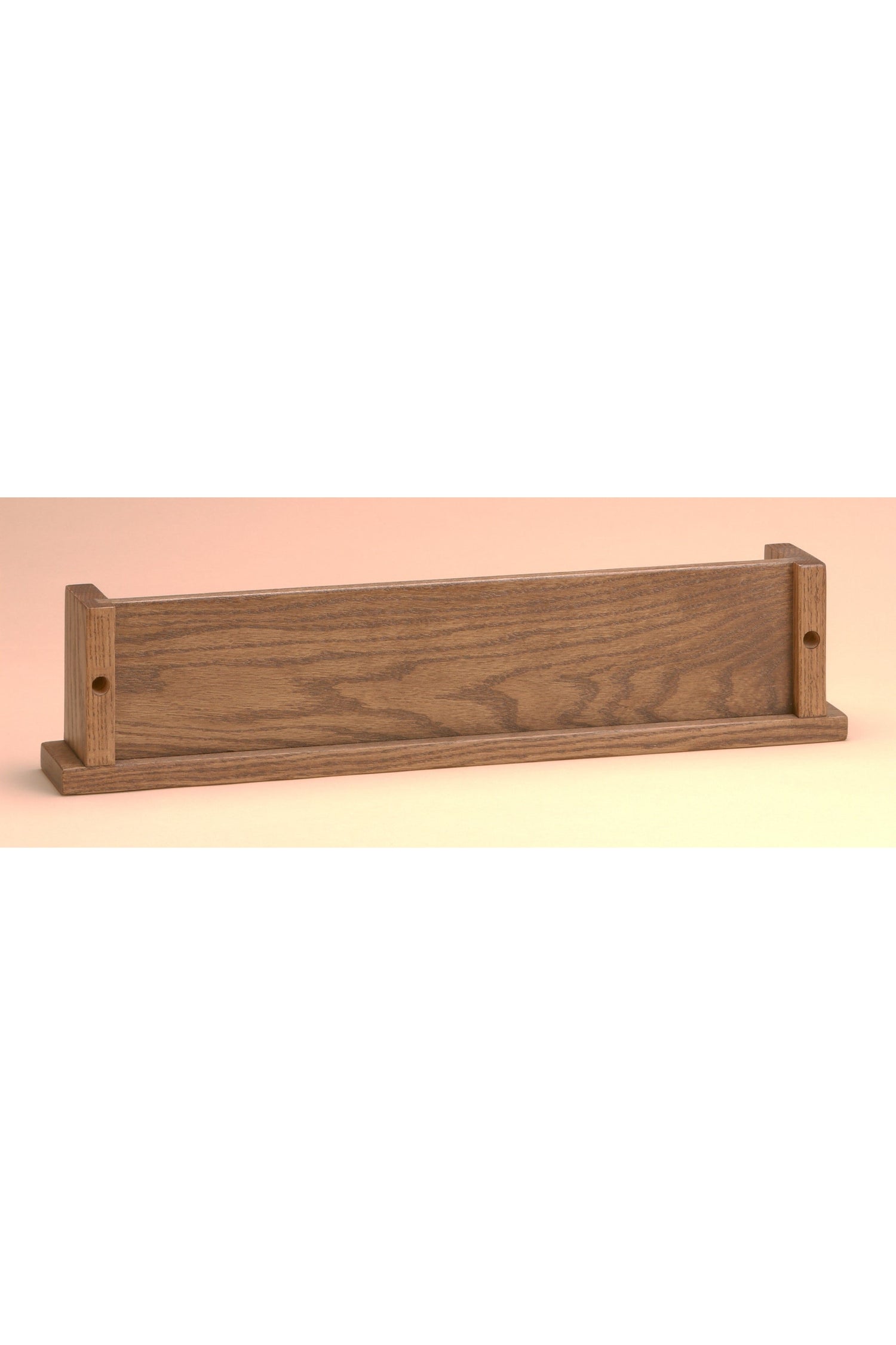 Hymn Book Rack #AI4225 is made of solid oak. Finished. Overall size: Inside dimensions: 18" width x 2-1/4" depth,Outside dimensions: 20" width x 3" depth, 9" height. Made in the USA. Choice of 16 wood finishes.