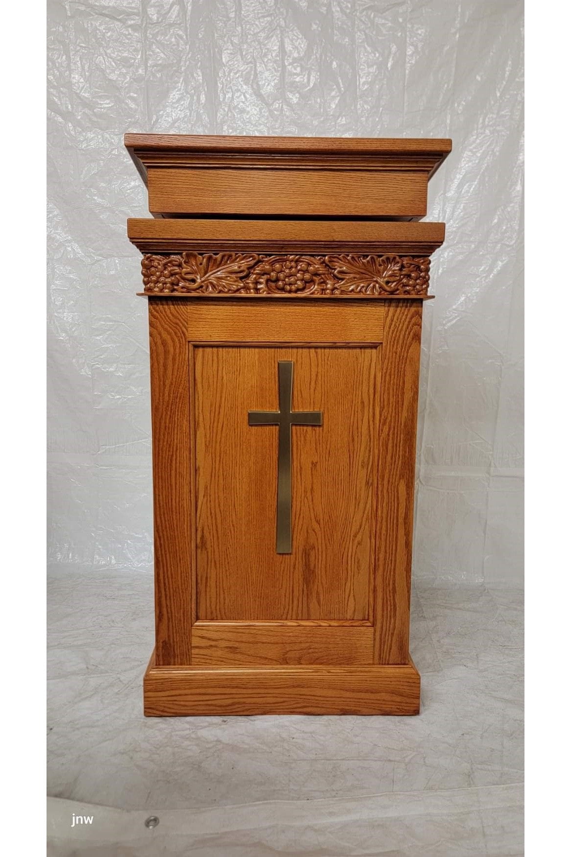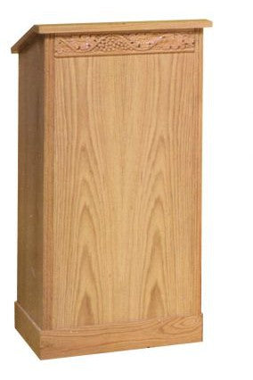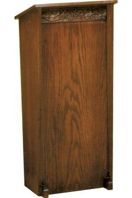 Unit price perLectern #AI328A - Made of solid oak. Lectern has an inside shelf and grapevine band on the front. Overall size 22" wide X 16" depth, 45" height. Choice of 16 wood finishes. Made in the USA.
