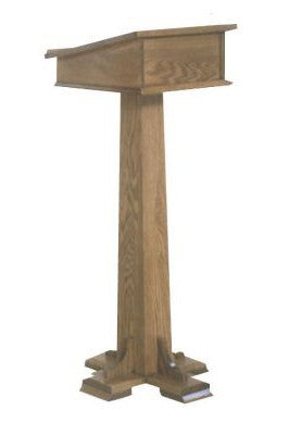 Unit price perLectern #AI530 - Made of solid oak. Lectern has two inside shelves. Lectern has a cathedral style with columnson the front. Overall size: 28" wide X 21" depth, 46" height.Choice of 16 wood finishes. Made in the USA.