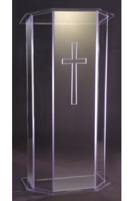 Unit price perLectern #AI3325 Made of Acrylic. Lectern has a hexagon shape. Overall Size: 24" wide x 15" depth x 48" height. and 1/2" acrylic.