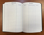 The small edition has 100 pages, 1,800 entries. Size 6" x 9 1/2". Heavy permalife ledger paper. Bound in black fabrikoid. Gold title. Most popular size book.