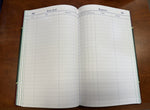 The standard edition has 100 pages, 2,500 entries, 25 to a page. Regular 9"x14" size. Remey Permalife ledger, with index. Bound in green Spanish grain sides, red sturdiflex corners & back. Gold titled and tooled cover.