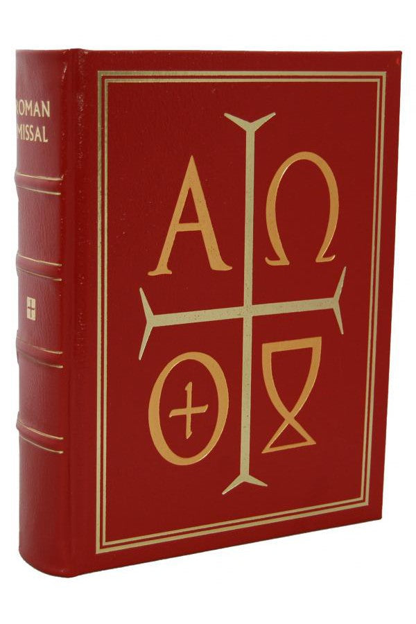 Unit price perRoman Missal Leather Altar Edition by Catholic Book Publishing. Presenting the third edition of the Roman Missal which includes the enhanced features that celebrants have come to know and trust from Catholic Book Publishing: large, easy-to-read type, printed and reinforced end papers, durable binding, sturdy, functional tabs for the Ordinary of the Mass, and satin ribbon markers. Full-color illustrations throughout. 8.5"x11". Red genuine leather with Alpha/Omega on the cover.