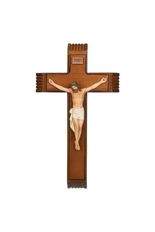 Unit price perThis beautiful crucifix opens up to become a sick call set, including two candles and a holy water bottle. The cross is made of wood, and the corpus is painted resin. Crucifix is 13" high.