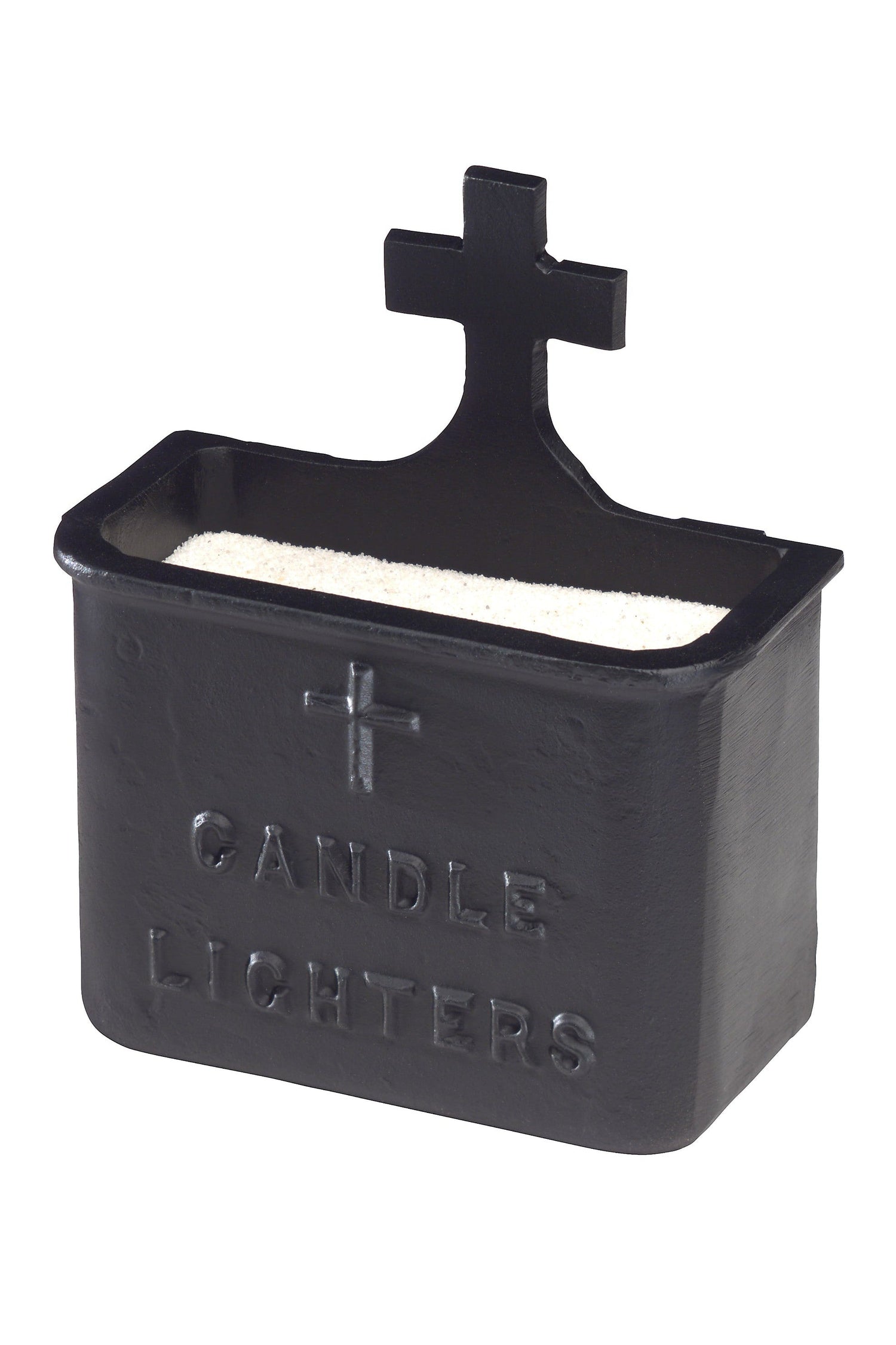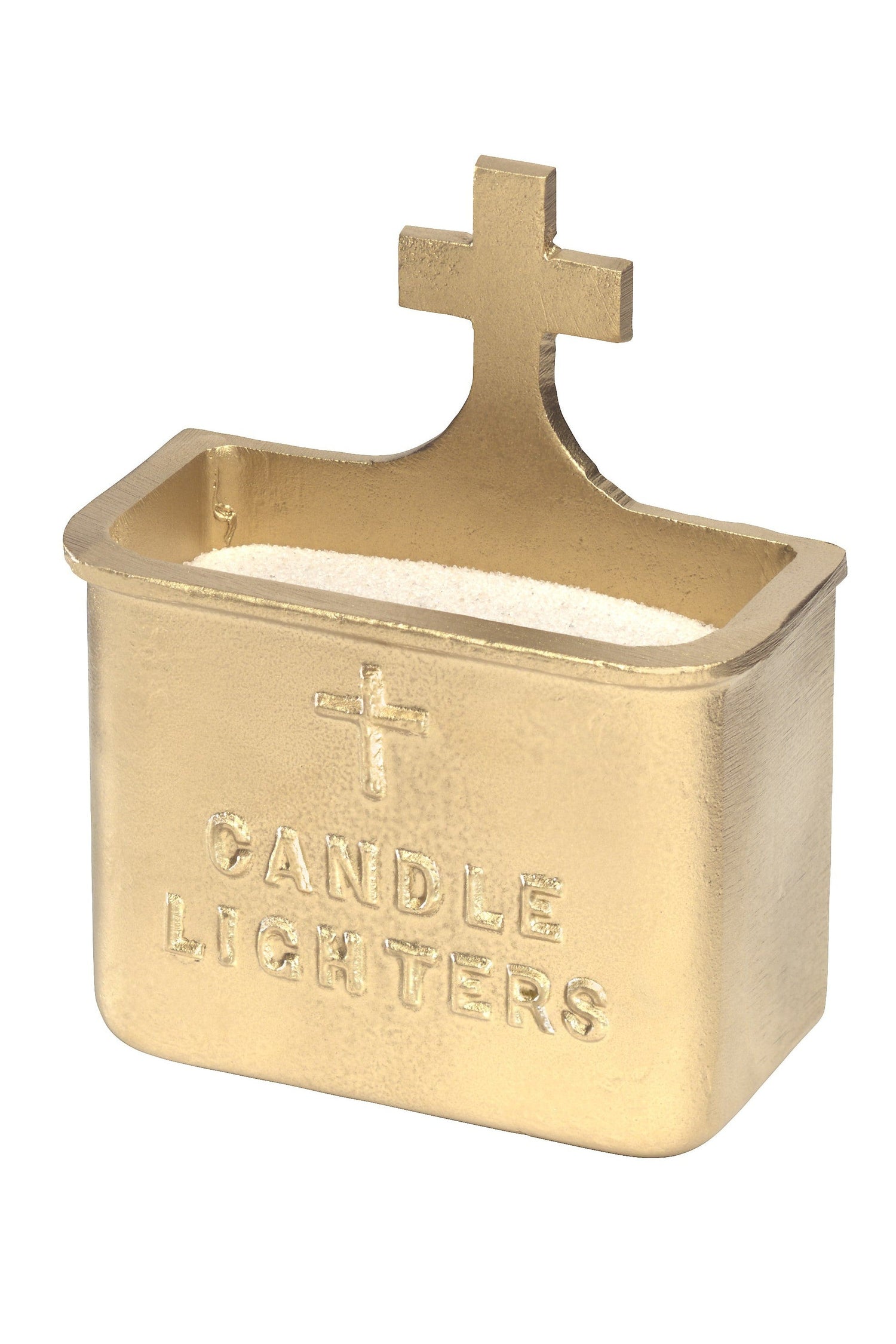 Unit price perCast aluminum sand box in choice of black or gold finish. Hangers on the back side fit most types of votive stands for quick and easy "hang on" installation. Provides full use of lighting sticks; snuffs them out immediately, while still allowing to relight easily. Ships complete with sand.