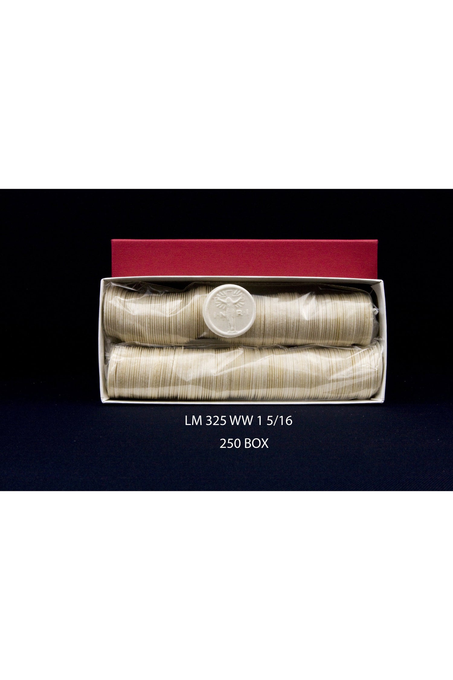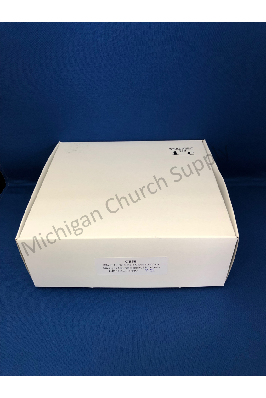 Unit price per1-3/8" Whole Wheat wafer/host with single cross design, packed in boxes of 1000 (10 rolls of 100 per box )