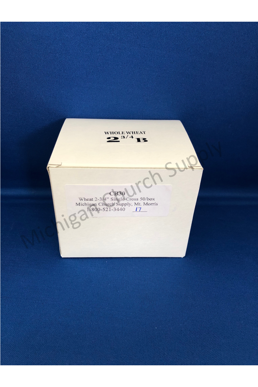 Unit price per2-3/4' Whole Wheat wafer/host with single cross design , packed 50 per box
