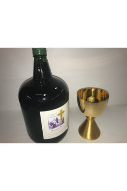Mustum is a name given to a pure grape altar wine where fermentation has been stopped by cooling. This grape wine is made from Ruby Cabernet, then blended with Concord Grapes to provide a wonderful natural juice of excellent color and quality. It is most fitting to commemorate the last Supper by using true Mustum for union with Christ.