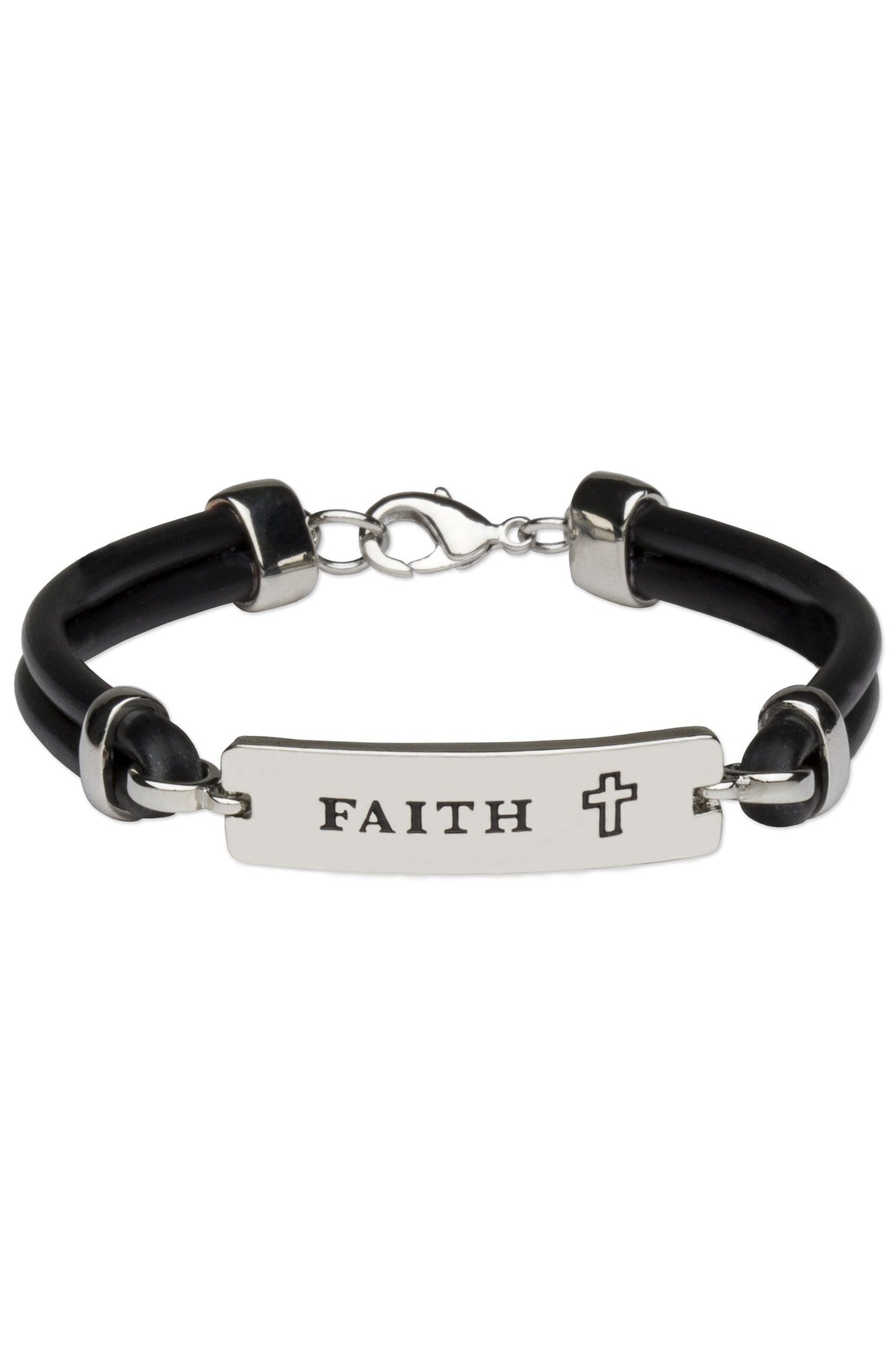 Unit price / perBar bracelet inscribed with "Faith" 8 1/2". Rhodium plated/silicone.