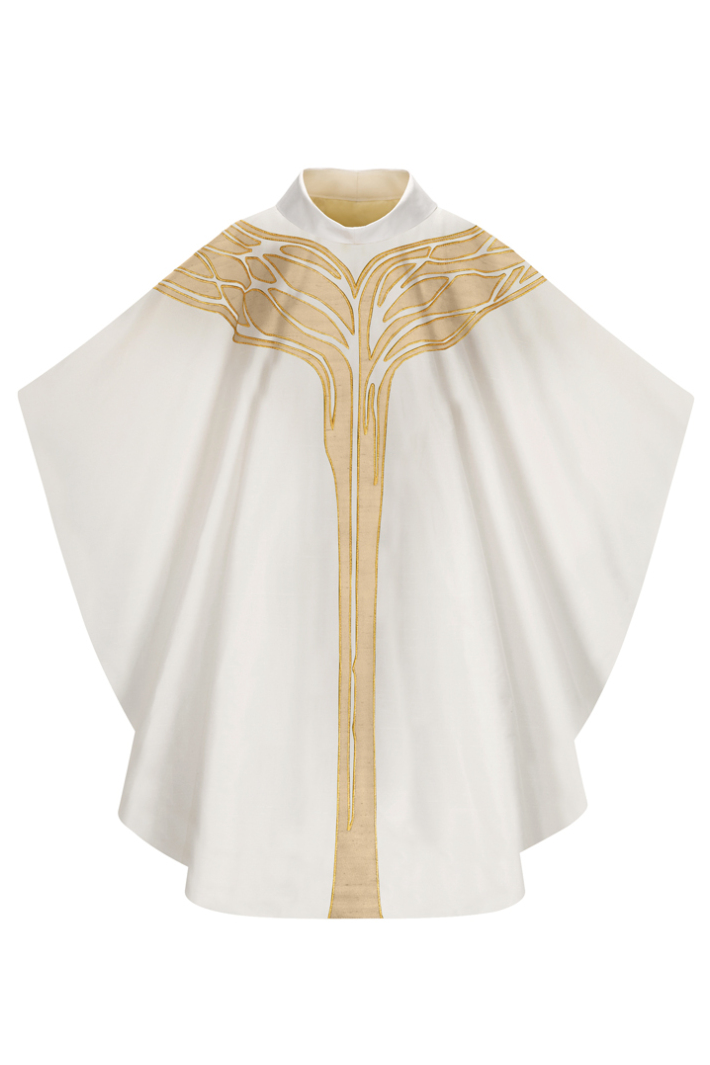 Chasuble "Albero della Vita", lined, roll-collar Width 59, length 53, with inside stole.