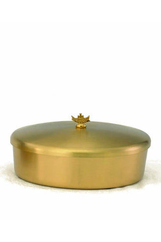 Unit price / perHost 350. Ht. 3 1/2". 7 5/8" Bowl dia. Satin inside finish. 24kt gold plate. Made in the USA. All host capacities are based on 1-3/8" communion breads.