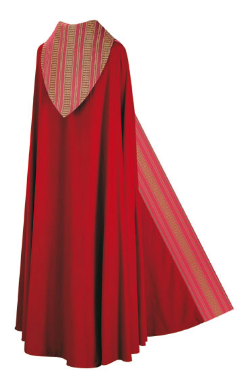 Unit price perCope unlined; standard length 57", or custom-made. In Brugia, soft blended fabric of 100% wool. Orphreys on chasuble, in Ornata; an elegant fabric with design woven in shades of gold colors.