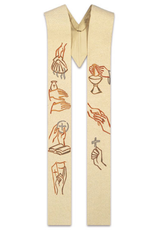 - Holy Orders: Bible (teaching), hosts (Eucharist).