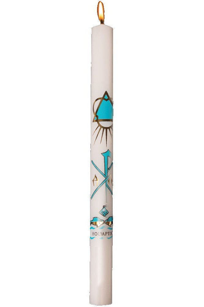 Unit price perIndividually gift boxed molded Baptismal candle. Plain End (PE).