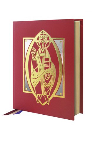 - a rich, durable, deep-red cloth cover embellished with Christ enthroned, rendered in a distinguished, bold style and foil stamped in gold and silver;