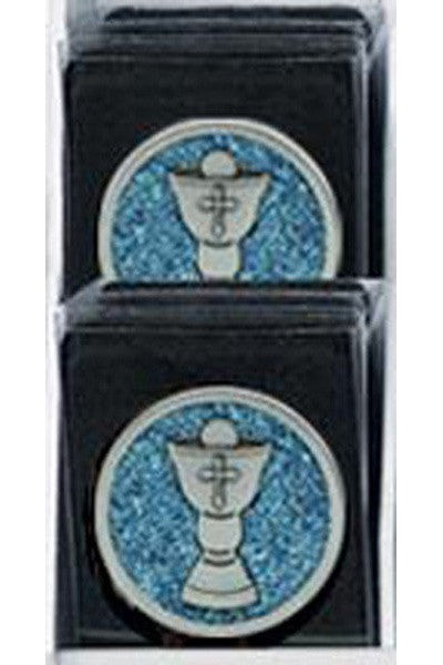 Unit price perFirst Holy Communion Token has a Blue Glitter Background with a Chalice design on one side. On the other side it says God Is there beside you to hear you when you pray, He is there to bless you each and every day. Pocket token size : 1-1/2"