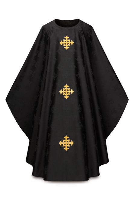 Unit price perChasuble withe embroidered crosses, width 150cm, length 135cm; with inside stole. These vestments can be made in Roman style.
