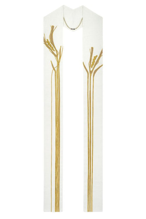 Unit price perLucia fabric 53% man-made fibers, 31% cotton, 16% Viscose. Application with embroidery in gold and wool threads.