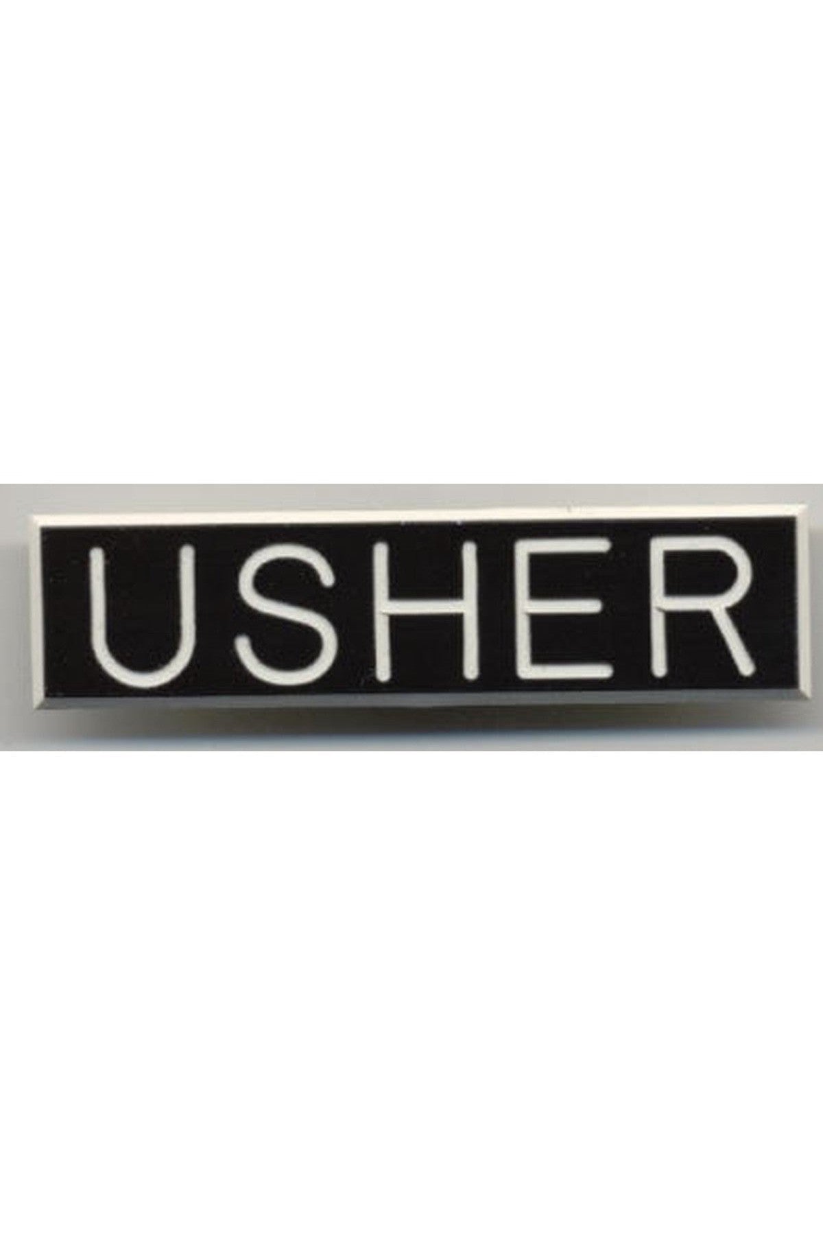 Unit price perUsher Badge. 5/8" x 2 1/2" White letters on contrasting black background. Specify magnetic, pin back or swivel clip back. Specify color: Black, White, Blue or Red. Standard is Black with white letters. Also available to read: Greeter or Deacon.