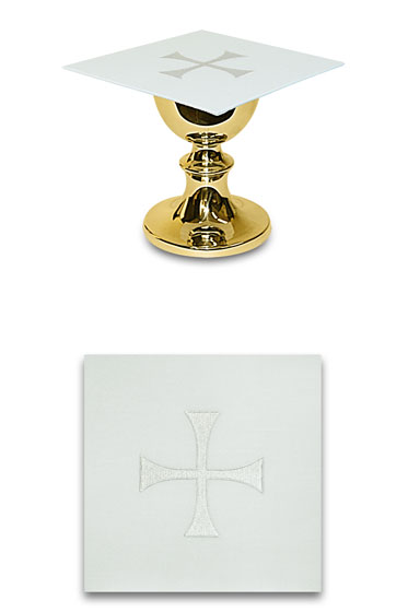Complete set includes embroidered chalice pall cover with insert, purificator, corporal and lavabo towel. Attractively gift boxed. Available as set or individually!