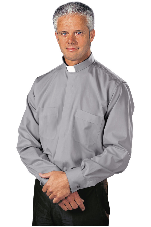 Tradicio is the European tab style, clergy shirt with removable tab. Available with short, long and extra long sleeves. With two breast pockets. Convertible French cuffs for closure with either buttons or cuff links.