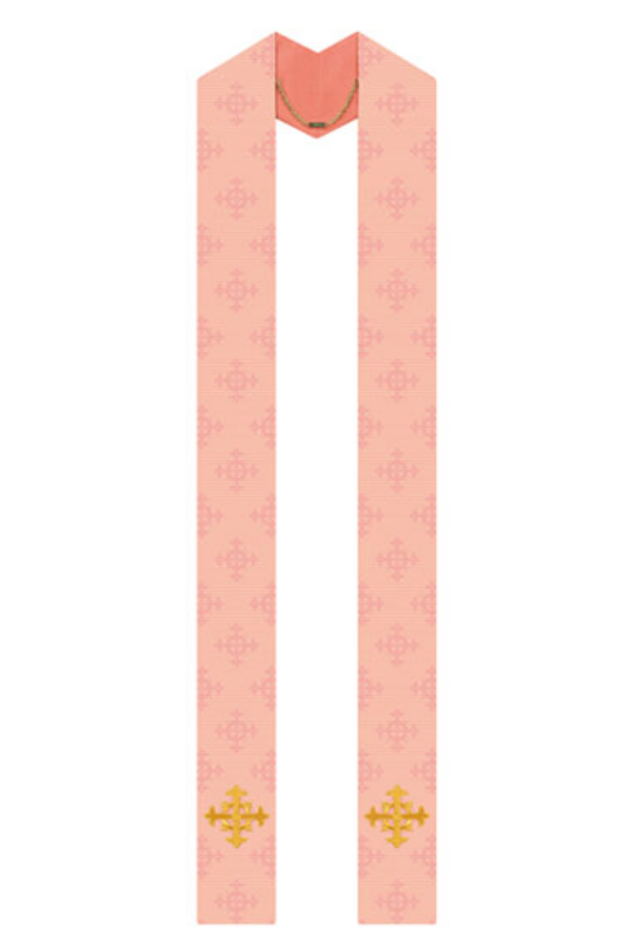 Unit price perOverlay stole in Adornes, a damast fabric of 100% man-made fibers, with embroidered crosses. Available in white, beige, red, rose, green, purple or black.