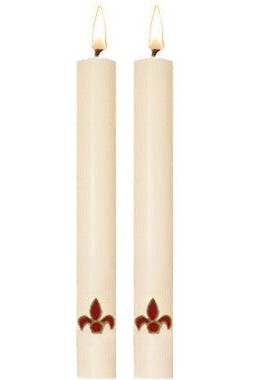 Paschal Side Candles - Red Fleur De Lis Sold As Pair