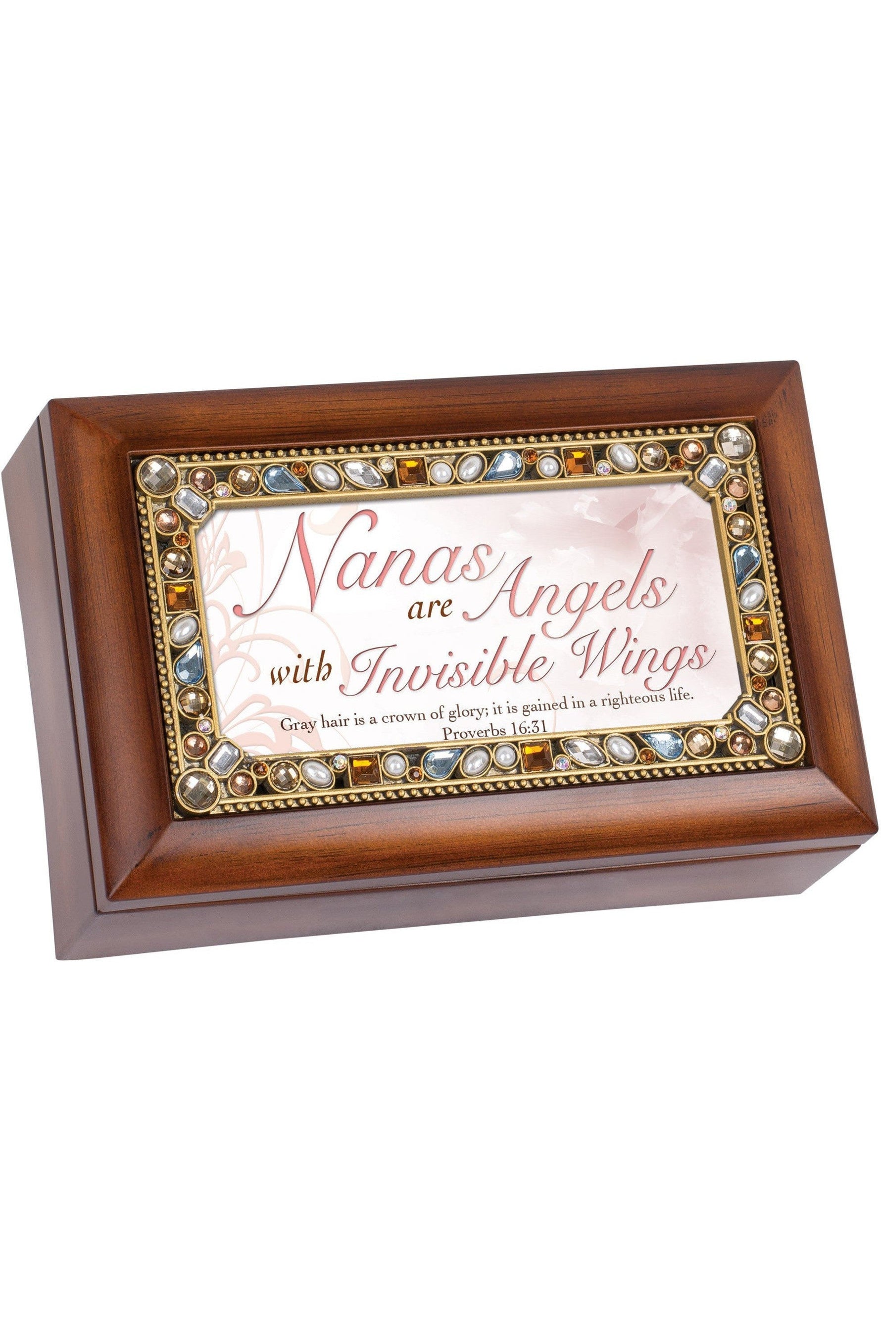 Unit price perThis Petite Jeweled Woodgrain Music box plays Amazing Grace and includes a Grandma insert.