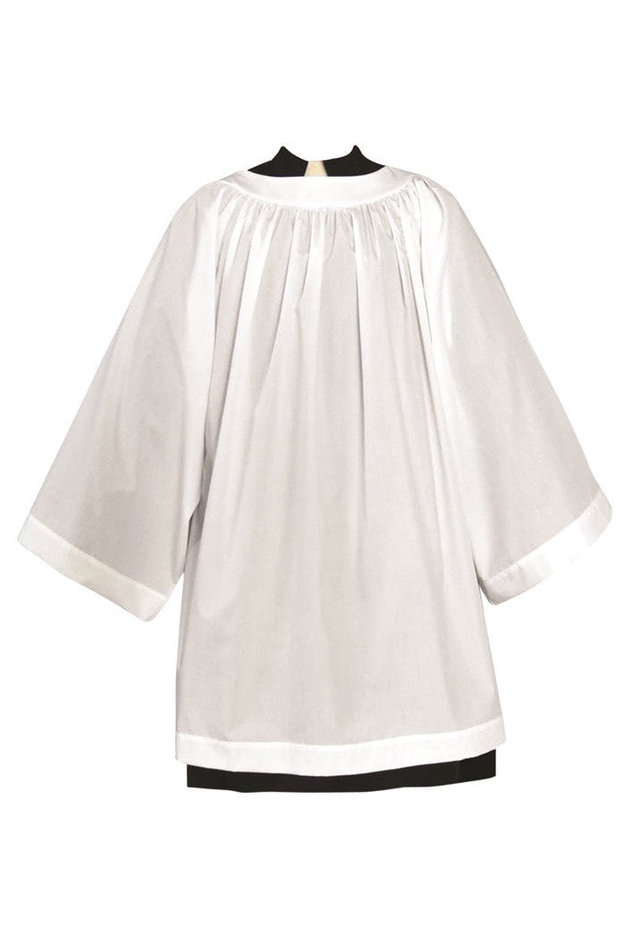 Unit price perTailored Priest Surplice. Round yoke with bell sleeves. Polyester and combed cotton blend. Wash and wear.