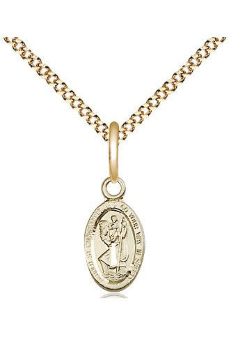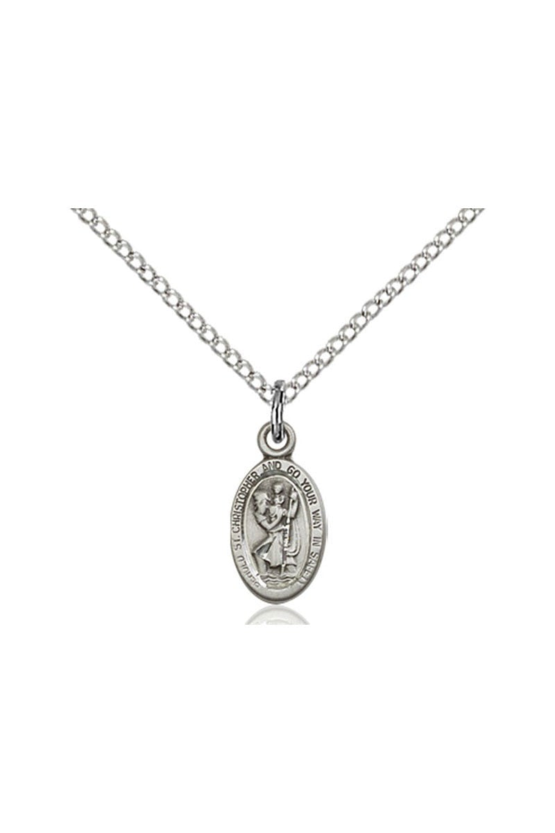 Unit price perSt. Christopher Medal. Lite 18" Curb Chain. Medal Dimensions: 1/2" x 1/4". Gift boxed in a velvet box.