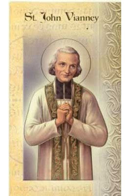 Unit price perFolded card contains a picture of St. John Vianney on the front, a short life of St. John inside, and a prayer to St. John on the back. Manufactured by William J. Hirten Company. Folded size 3" x 6 1/4".