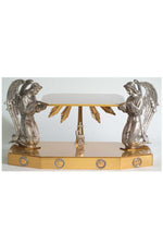 Unit price / per24k gold plate with large antique silver plated angels. Overall dimensions: 26" W. x 13"D. x 14" H., wt. 39 lbs.