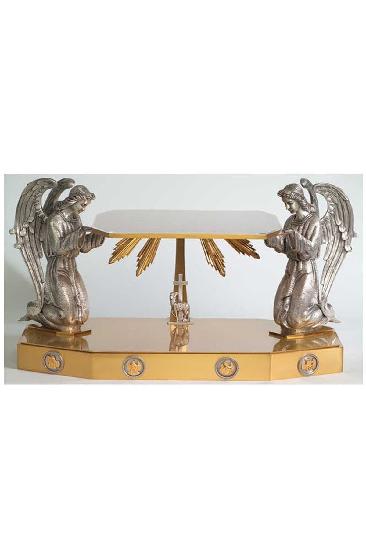 Unit price per24k gold plate with large antique silver plated angels. Overall dimensions: 26" W. x 13"D. x 14" H., wt. 39 lbs.